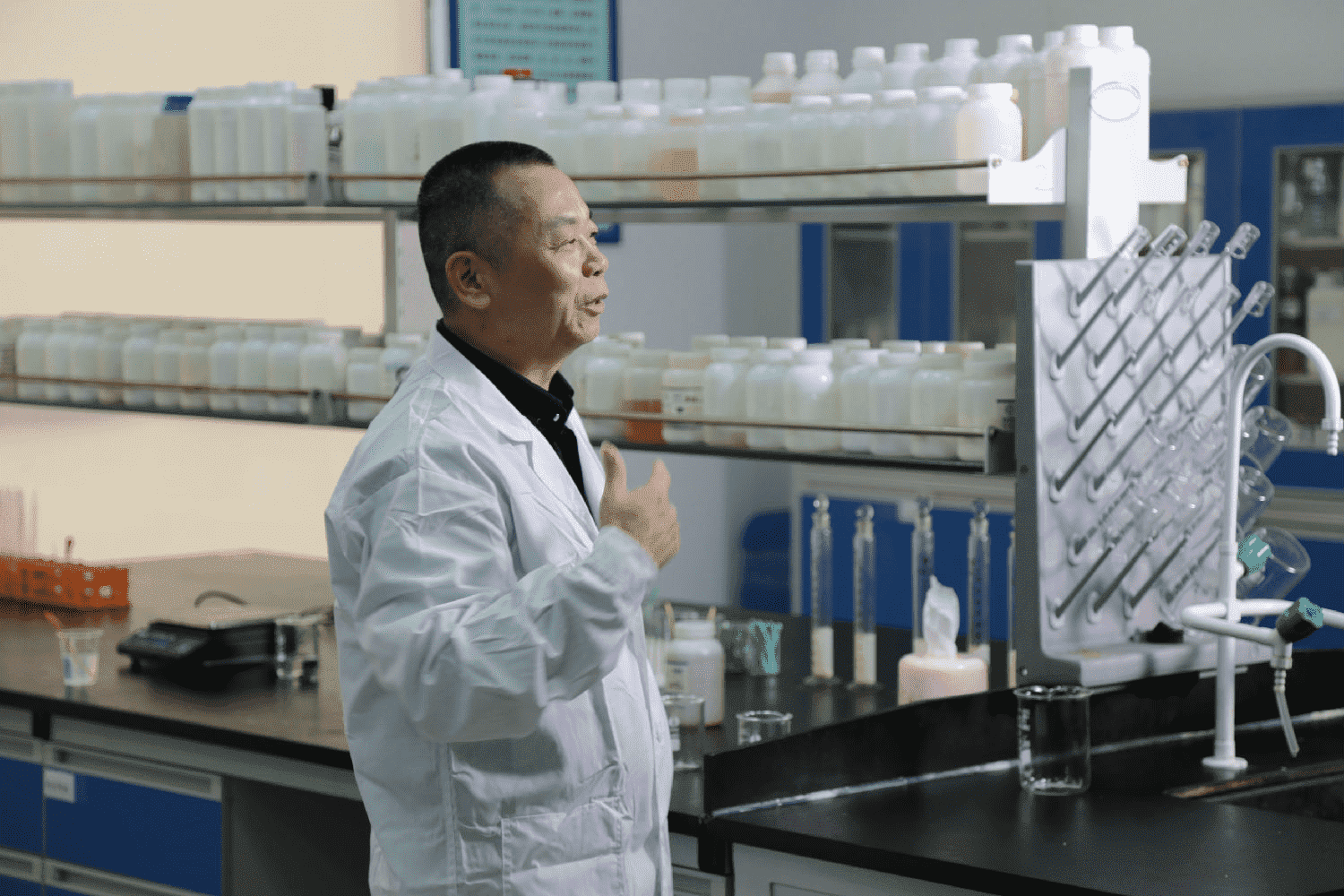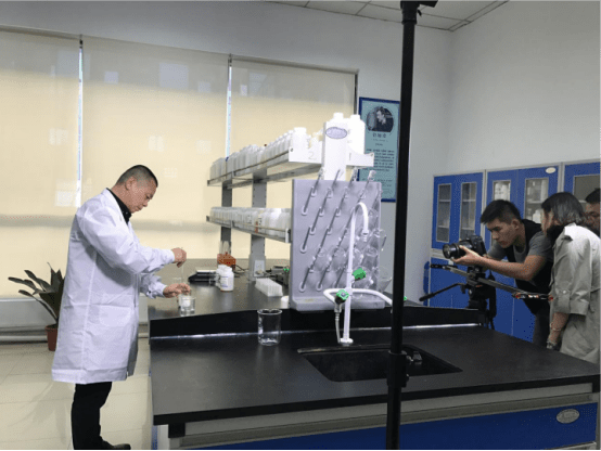 CCTV欄目組的工作人員認(rèn)真仔細(xì)的觀察著周總做實(shí)驗(yàn),隨時準(zhǔn)備抓拍,讓大家更真實(shí)的看到變化。見證小小的一滴,卻讓泡沫下落不明的奇跡。以真實(shí)的浙江某客戶為例,周總手里展示的是為客戶需要消泡的樣品。根據(jù)客戶的需求,模擬消泡環(huán)境,通過不斷測試,調(diào)整不同的消泡劑配方今天總算研究出來了這個適合浙江客戶的配方,不是一個,而是四個配方,讓客戶有更多選擇。周總的嚴(yán)謹(jǐn)與堅持,一直影響著中聯(lián)邦的每一位,也成為中聯(lián)邦的做事風(fēng)格。
